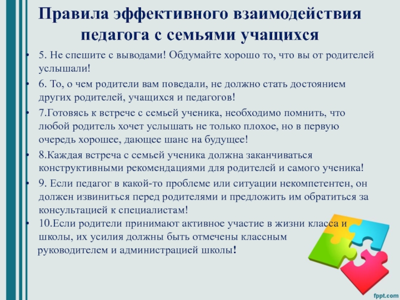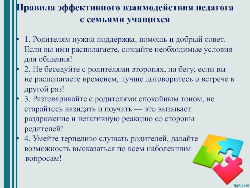 Правила эффективного взаимодействия педагога с семьями учащихся