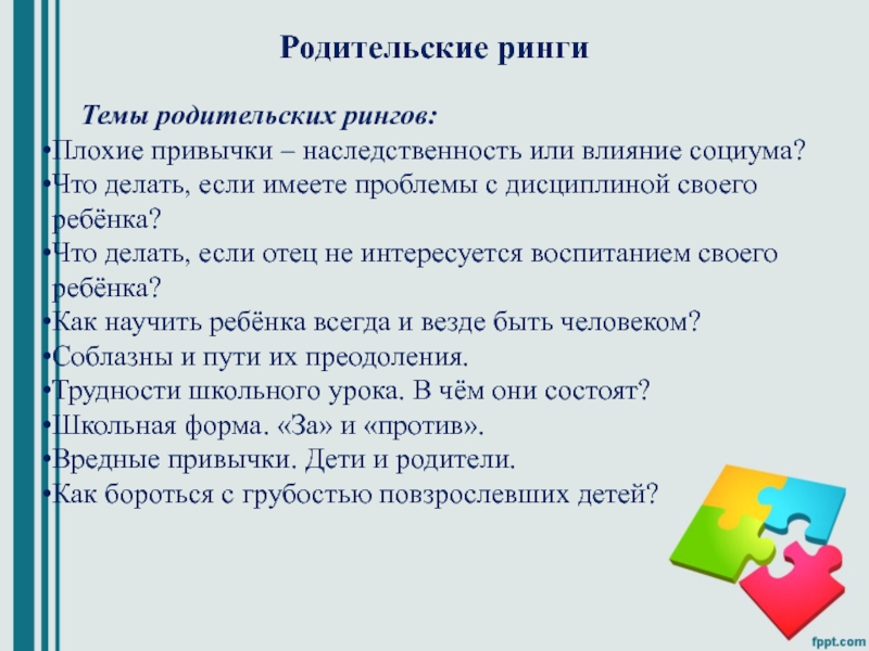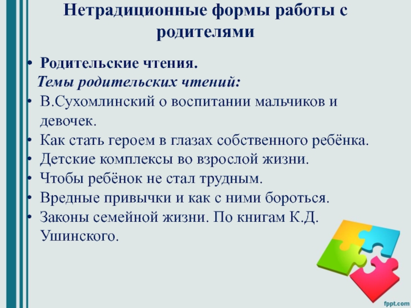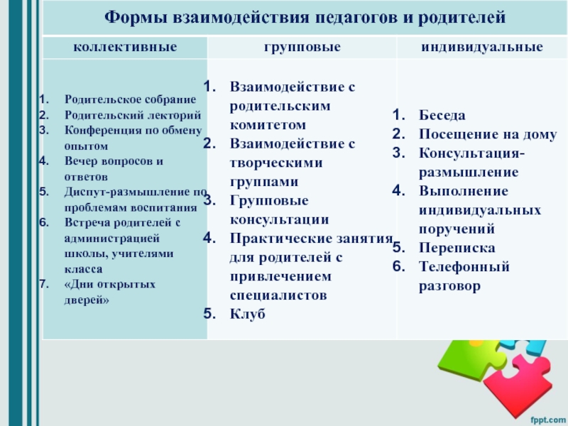 Это активная форма работы с теми родителями, которые осознают проблемные