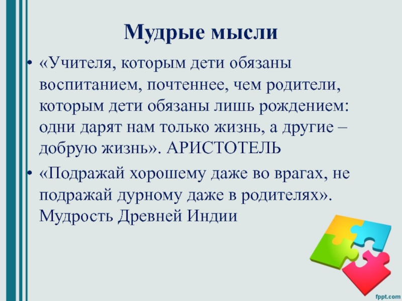 «Учителя, которым дети обязаны воспитанием, почтеннее, чем родители, которым дети