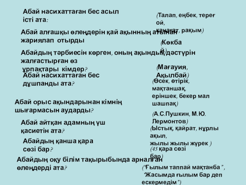 Абайдың оқу білім тақырыбында арналған өлеңдерді ата?