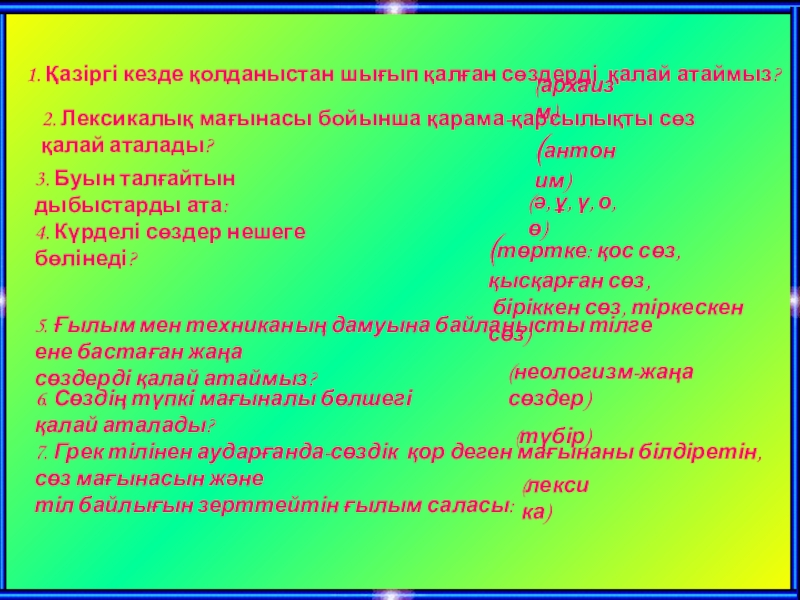 7. Грек тілінен аударғанда-сөздік қор деген мағынаны білдіретін, сөз мағынасын және