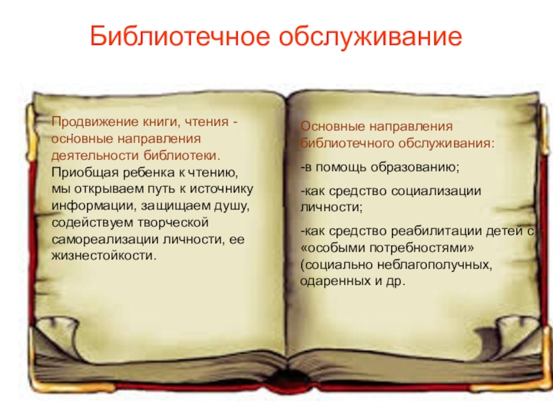 Основные направления библиотечного обслуживания: