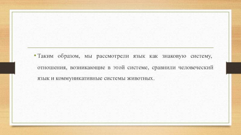 Слайд 12Таким образом, мы рассмотрели язык как знаковую систему, отношения, возникающие в