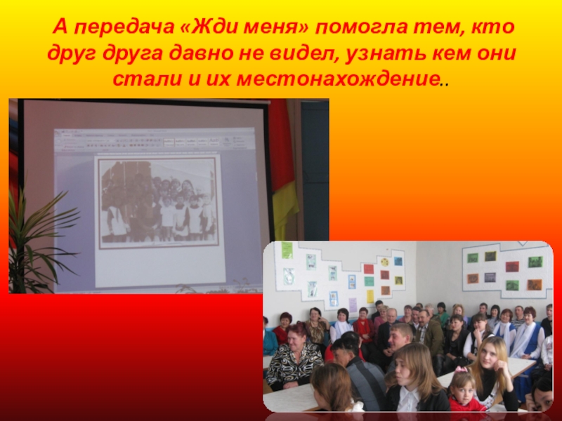Слайд 8 А передача «Жди меня» помогла тем, кто друг друга давно
