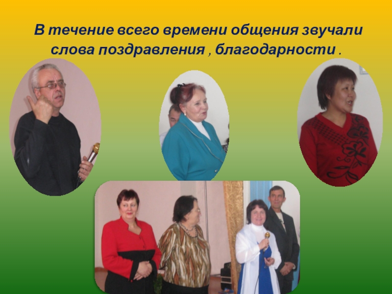 Слайд 9 В течение всего времени общения звучали слова поздравления , благодарности
