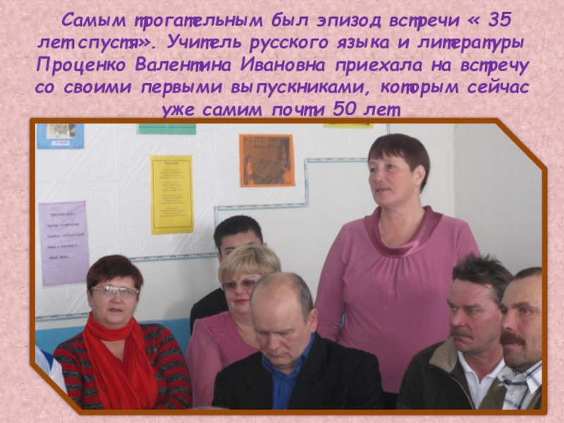 Самым трогательным был эпизод встречи « 35 лет спустя». Учитель русского языка и литературы Проценко