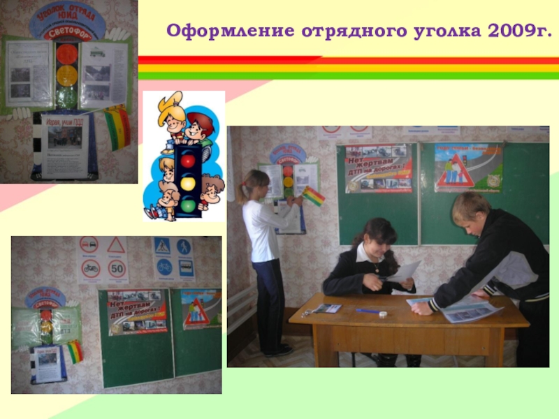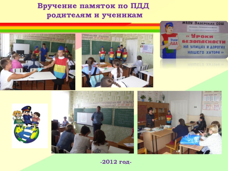 В школе оформлен уголок безопасности, проводятся викторины по ПДД, смотры агитплакатов, экскурсии-беседы, линейки безопасности, конкурсы рисунков, проходят встречи с работниками ГИБДД, есть своя агитбригада.