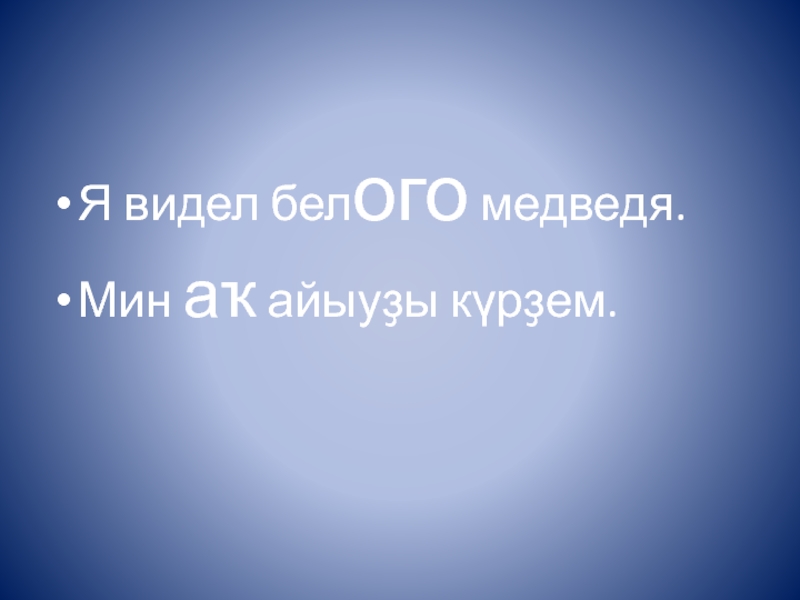 Я видел белого медведя.Мин аҡ айыуҙы күрҙем.
