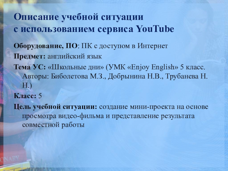 Тема УС: «Школьные дни» (УМК «Enjoy English» 5 класс. Авторы: Биболетова М.З., Добрынина Н.В., Трубанева Н.Н.)