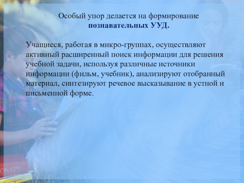 осуществляют активный расширенный поиск информации для решения учебной задачи, используя различные источники информации (фильм, учебник), анализируют отобранный материал, синтезируют речевое высказывание в устной и письменной форме.