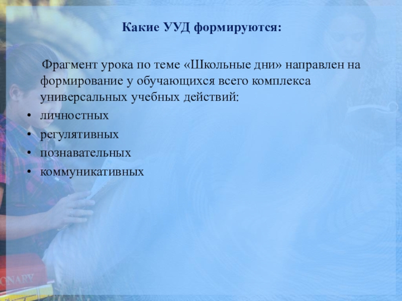 «Школьные дни» направлен на формирование у обучающихся всего комплекса универсальных учебных действий: