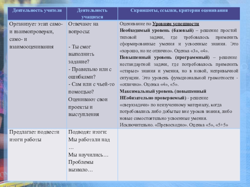 2. Учитель систематически обучает детей осуществлять рефлексивное действие (оценивать свою деятельность).
