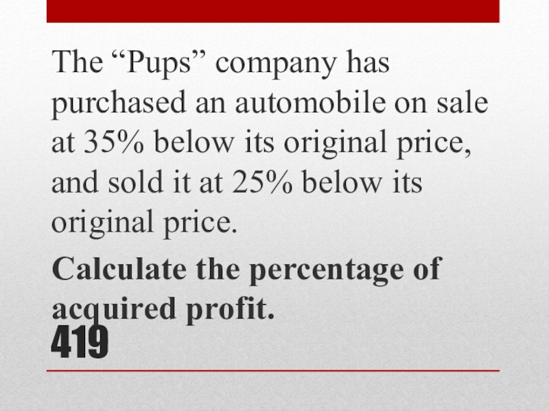 419The “Pups” company has purchased an automobile on sale at 35% below its original price, and sold
