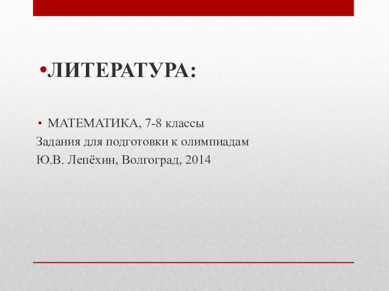 ЛИТЕРАТУРА:МАТЕМАТИКА, 7-8 классыЗадания для подготовки к олимпиадамЮ.В. Лепёхин, Волгоград, 2014