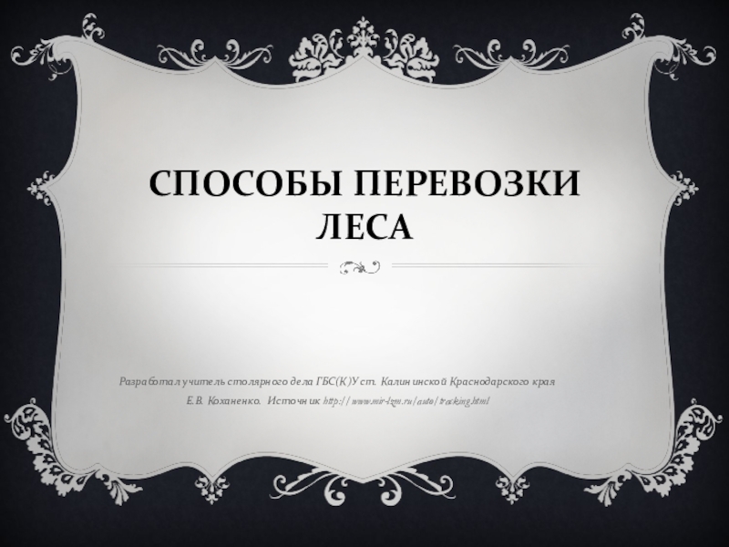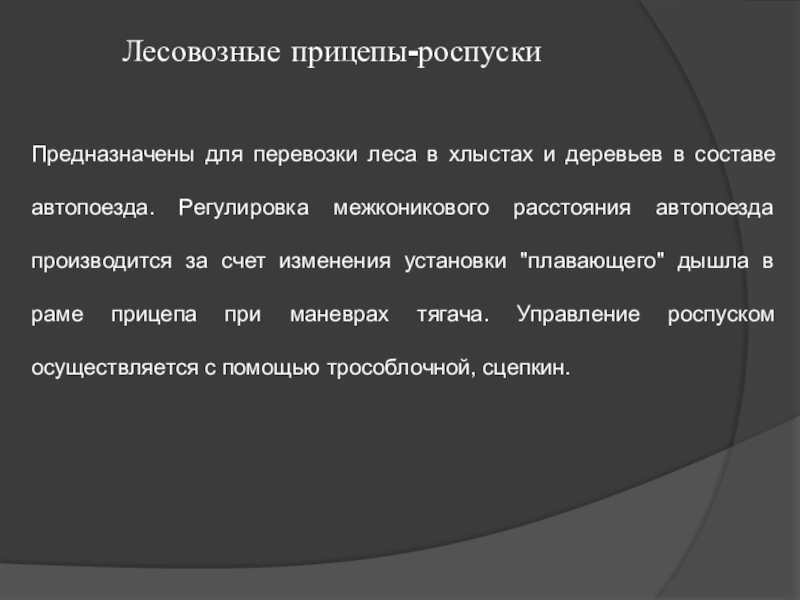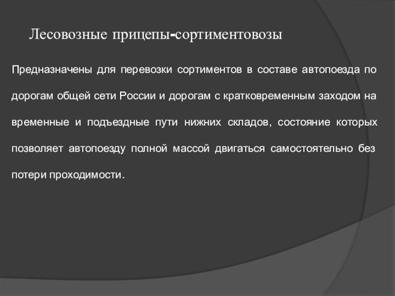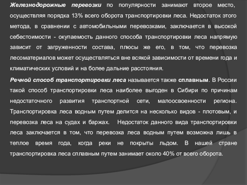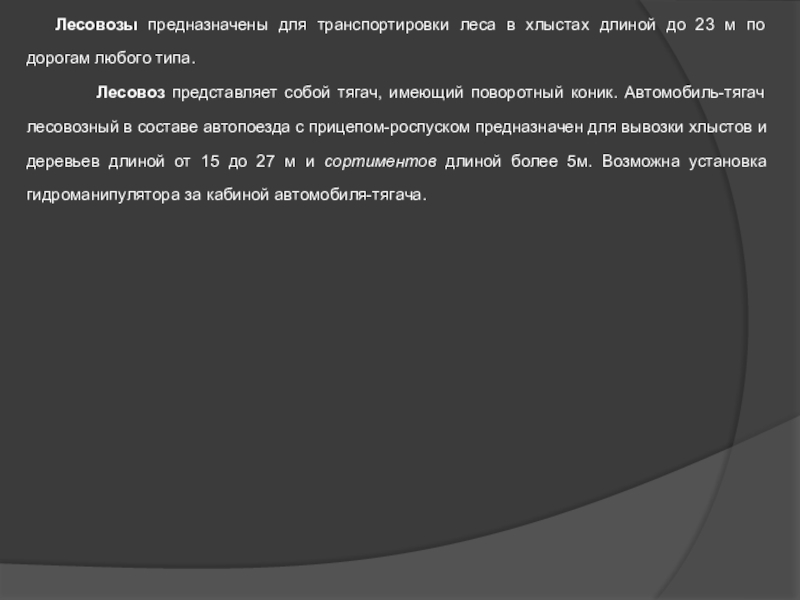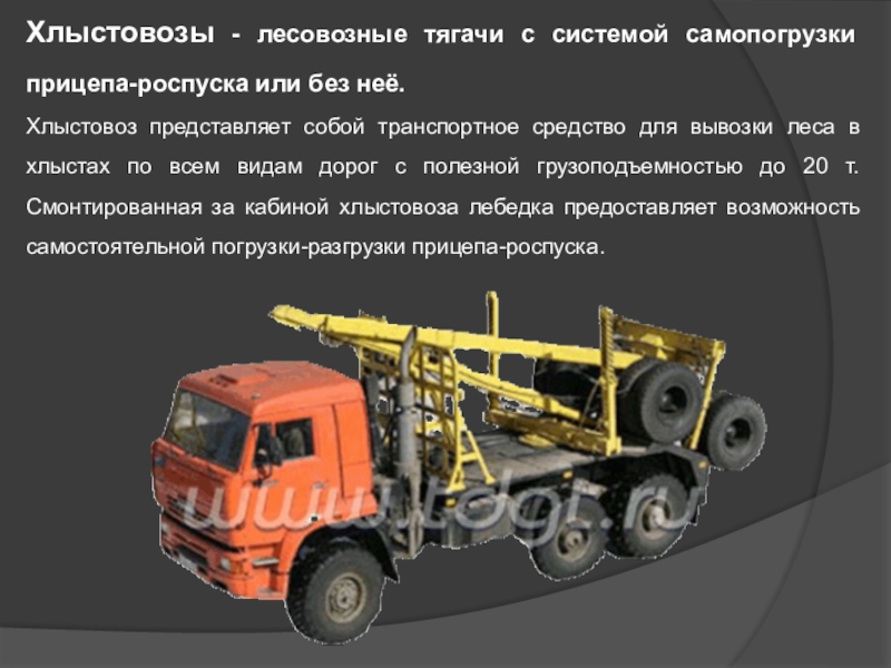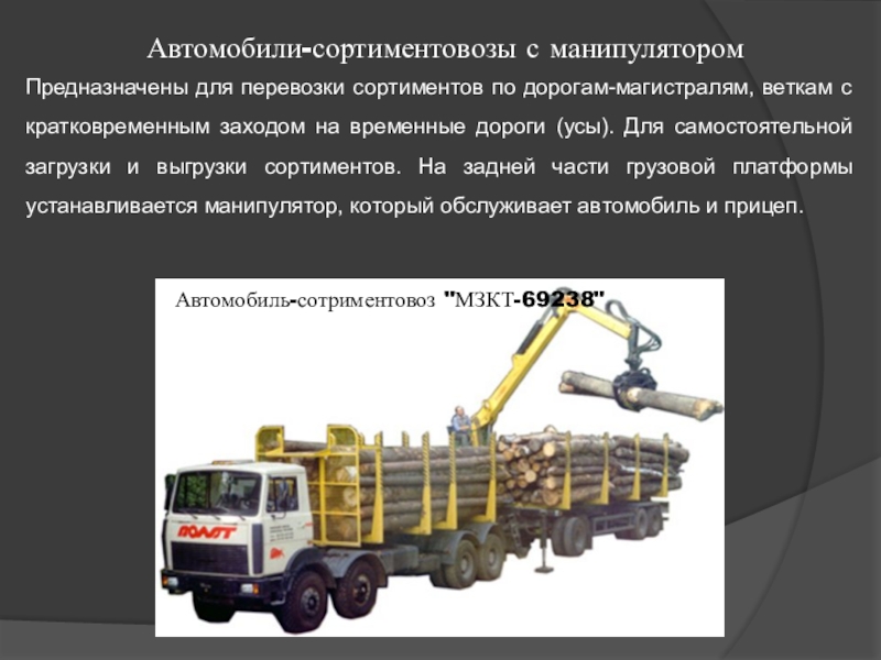 Существует несколько видов транспортировки леса. Наиболее распространенный вид - грузовые перевозки леса и лесоматериалов специализированным автомобильным транспортом.