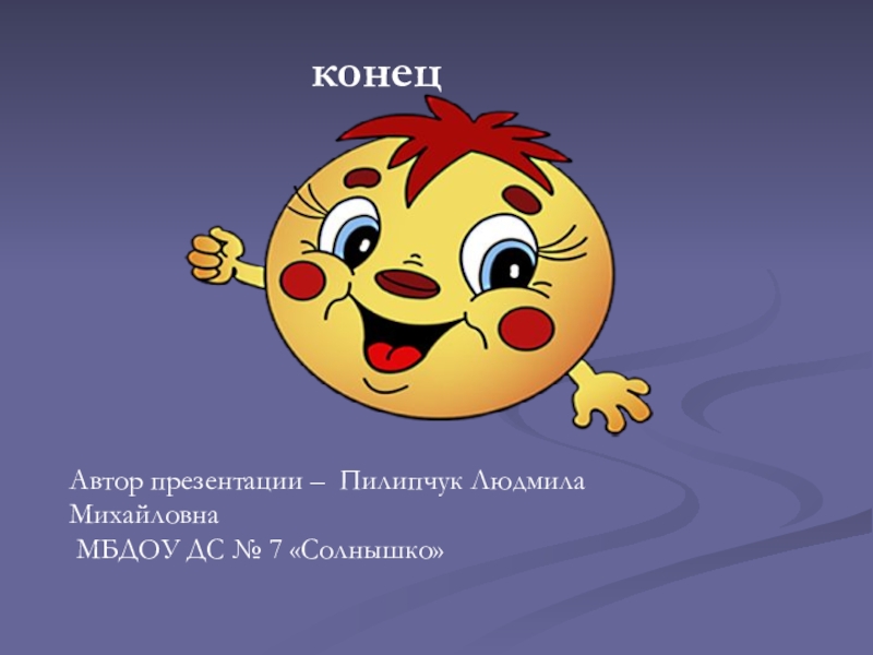 Автор презентации – Пилипчук Людмила Михайловна МБДОУ ДС № 7 «Солнышко» конец