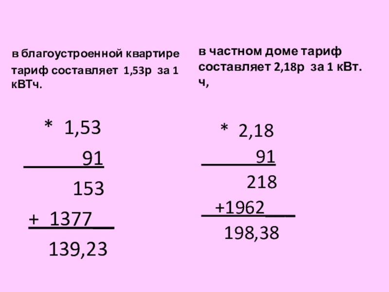 в частном доме тариф составляет 2,18р за 1 кВт.ч,