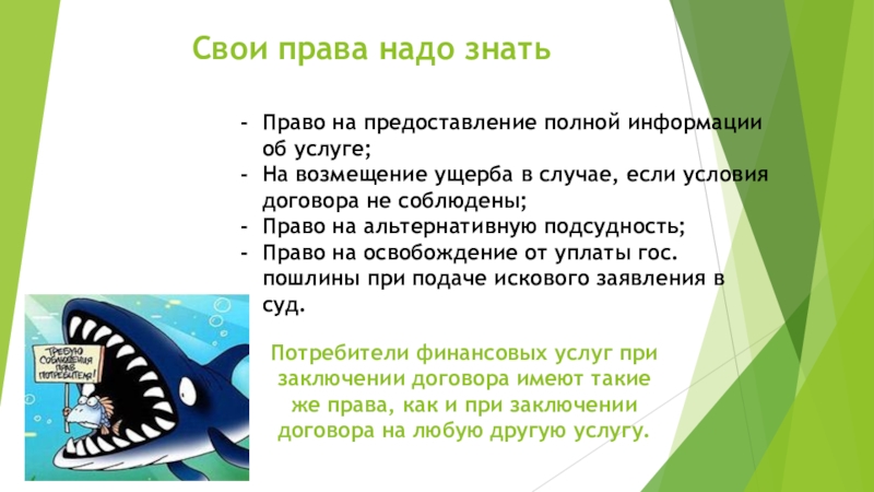 Потребители финансовых услуг при заключении договора имеют такие же права, как и при заключении договора на любую другую услугу.