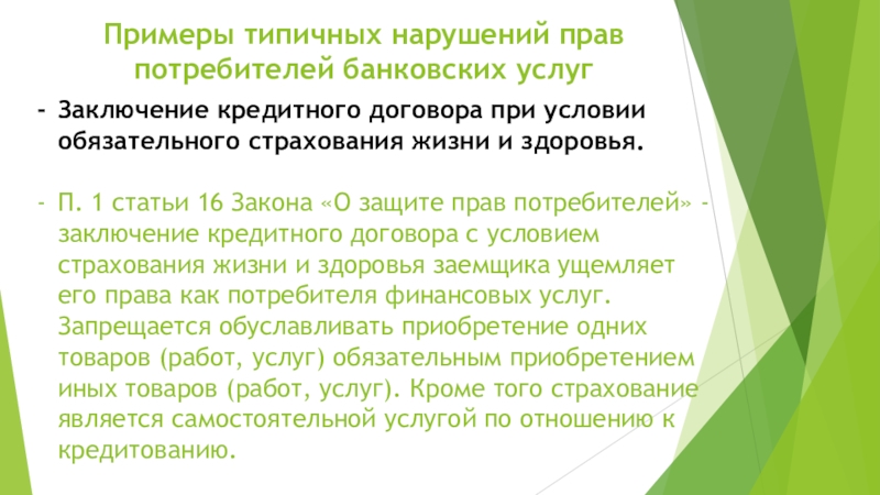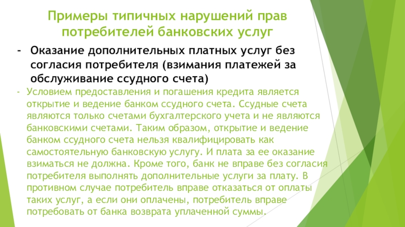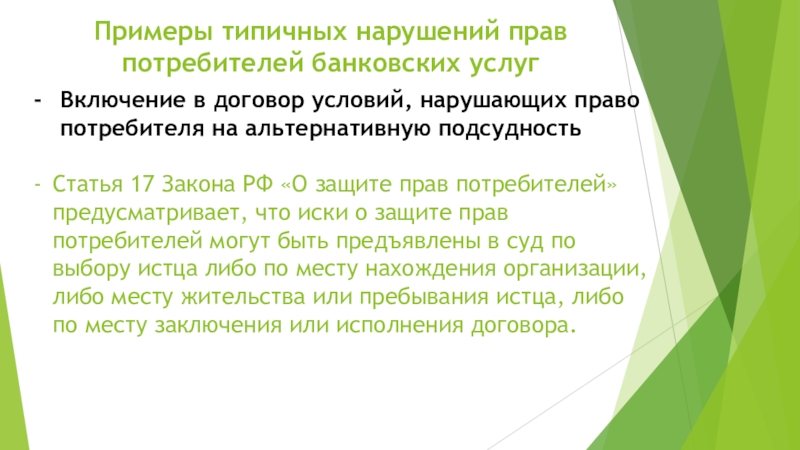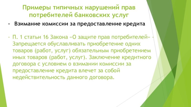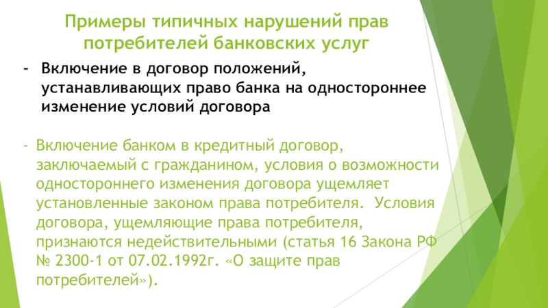Слайд 20Примеры типичных нарушений прав потребителей банковских услуг