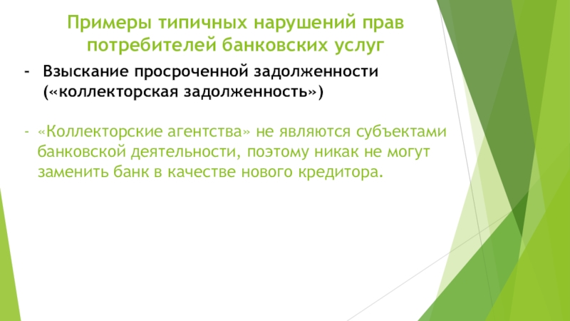 Слайд 25Примеры типичных нарушений прав потребителей банковских услуг
