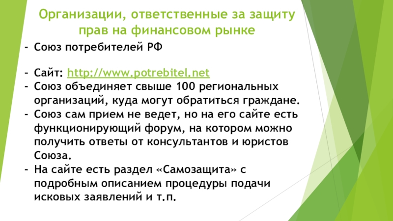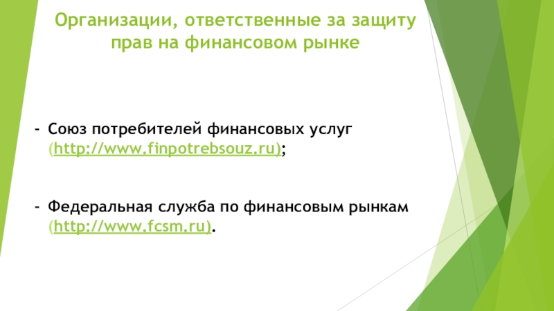 Слайд 16Организации, ответственные за защиту прав на финансовом рынке