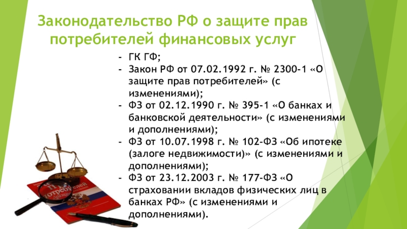 Слайд 5Законодательство РФ о защите прав потребителей финансовых услуг