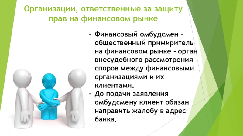 Слайд 13Организации, ответственные за защиту прав на финансовом рынке
