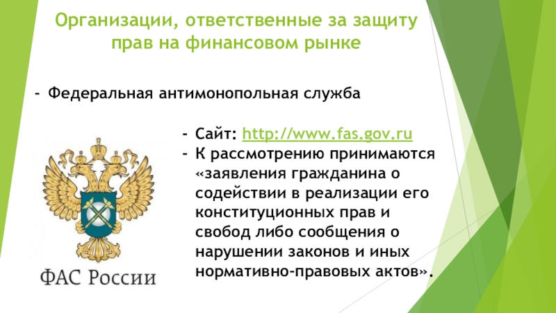 Слайд 11Организации, ответственные за защиту прав на финансовом рынке