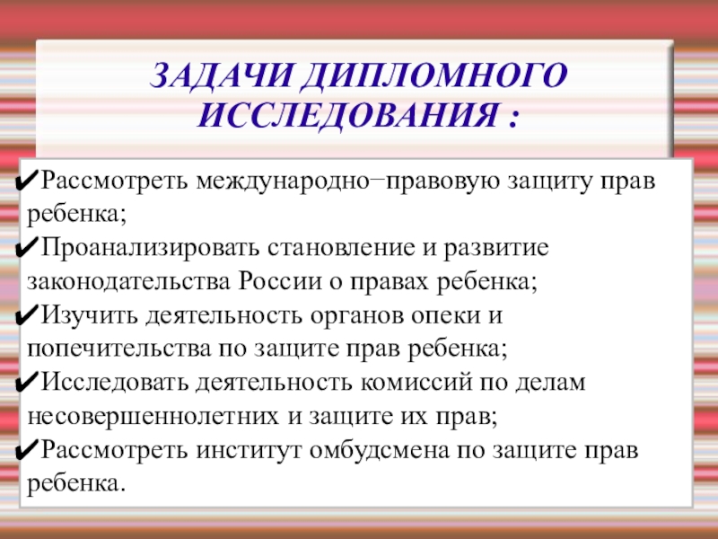 ЗАДАЧИ ДИПЛОМНОГО ИССЛЕДОВАНИЯ :