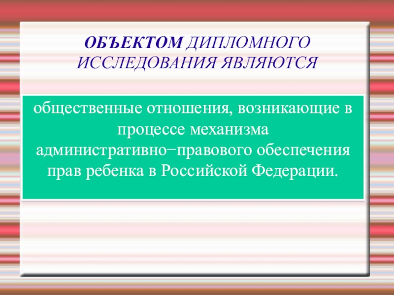 ОБЪЕКТОМ ДИПЛОМНОГО ИССЛЕДОВАНИЯ ЯВЛЯЮТСЯ
