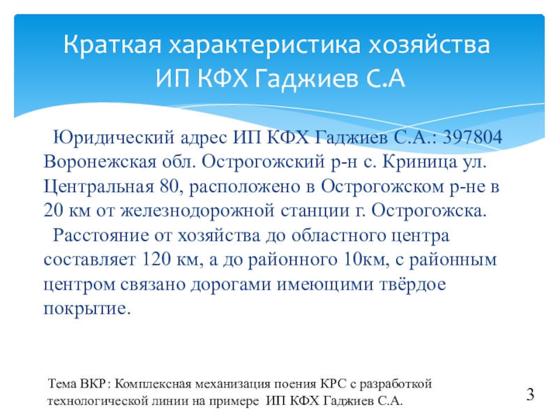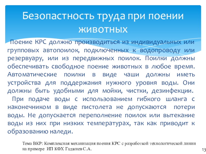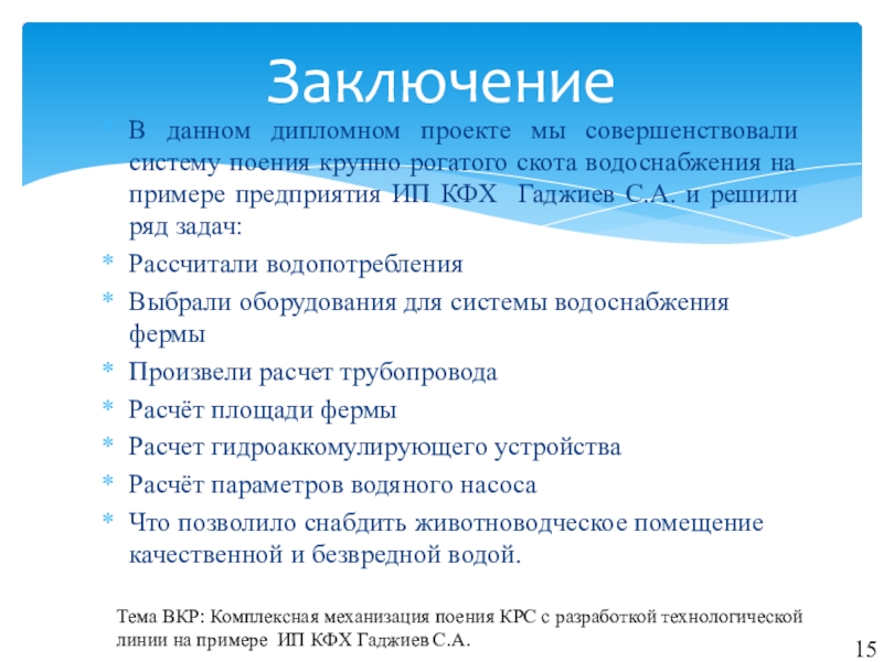 Тема ВКР: Комплексная механизация поения КРС с разработкой технологической линии на примере ИП КФХ Гаджиев С.А.