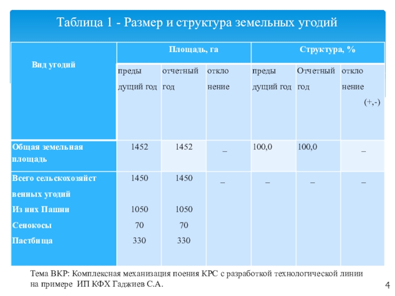 Таблица 1 - Размер и структура земельных угодий
