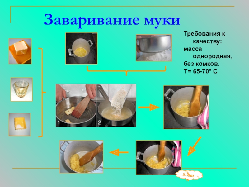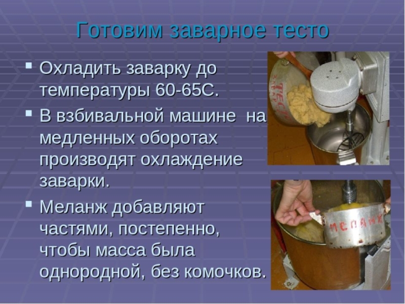 2 на небольшом огне, постоянно размешивая и разминая мучную смесь, чтобы она равномерно прогрелась-«заварилась» (отсюда и название теста). При этом тесто соберется в один комок (все правильно!) и станет однородным. На дне кастрюли должна образоваться тонкая белая пленка – теперь снимаем с огня, и пусть самую капельку остынет. Остужаем минут 5. Если вводить яйца сразу, белок заварится от горячего теста.