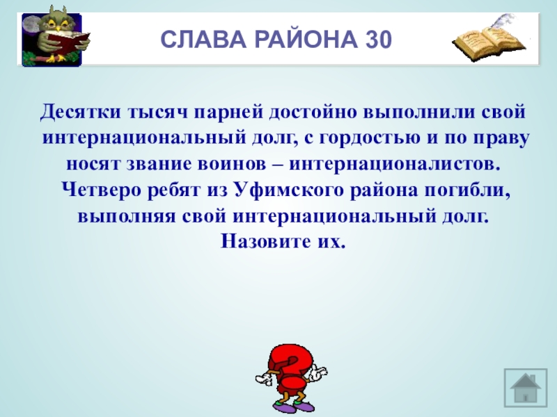 Четверо ребят из Уфимского района погибли, выполняя свой интернациональный долг. Назовите их.