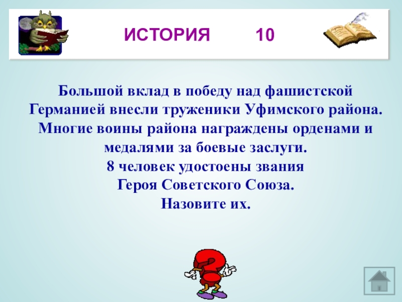 Германией внесли труженики Уфимского района. Многие воины района награждены орденами и медалями за боевые заслуги.