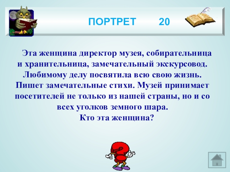 женщина директор музея, собирательница и хранительница, замечательный экскурсовод. Любимому делу посвятила всю свою жизнь. Пишет замечательные стихи. Музей принимает посетителей не только из нашей страны, но и со всех уголков земного шара.