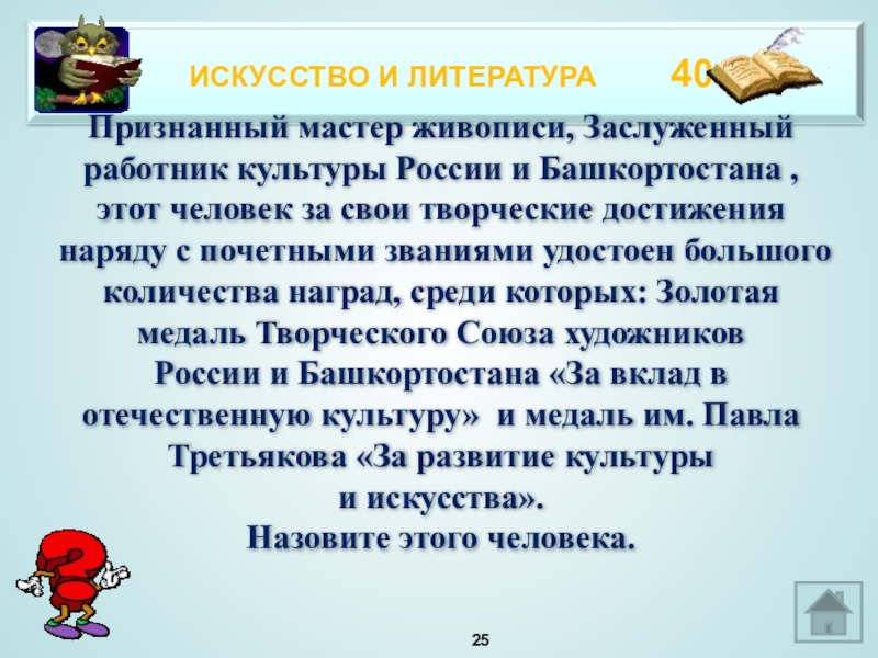Слайд 25 ИСКУССТВО И ЛИТЕРАТУРА 40