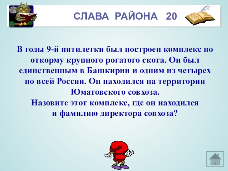 откорму крупного рогатого скота. Он был единственным в Башкирии и одним из четырех по всей России. Он находился на территории Юматовского совхоза.