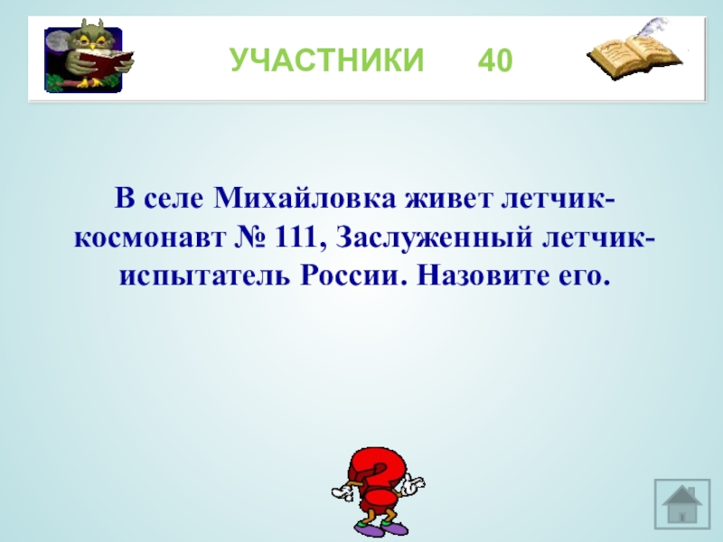 живет летчик-космонавт № 111, Заслуженный летчик-испытатель России. Назовите его.