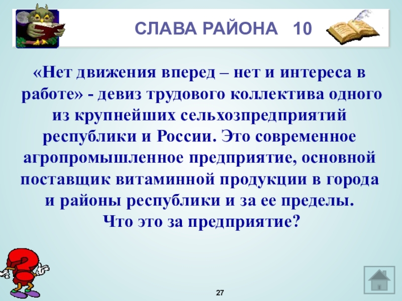 в работе» - девиз трудового коллектива одного из крупнейших сельхозпредприятий республики и России. Это современное агропромышленное предприятие, основной поставщик витаминной продукции в города и районы республики и за ее пределы.
