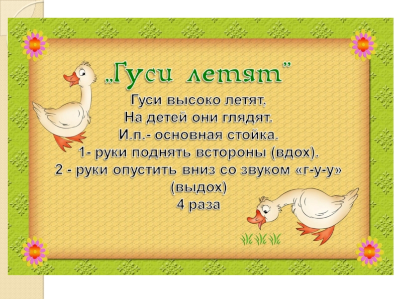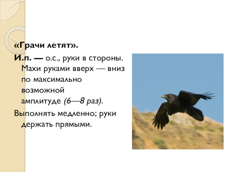 И.п. — о.с., руки в стороны. Махи руками вверх — вниз