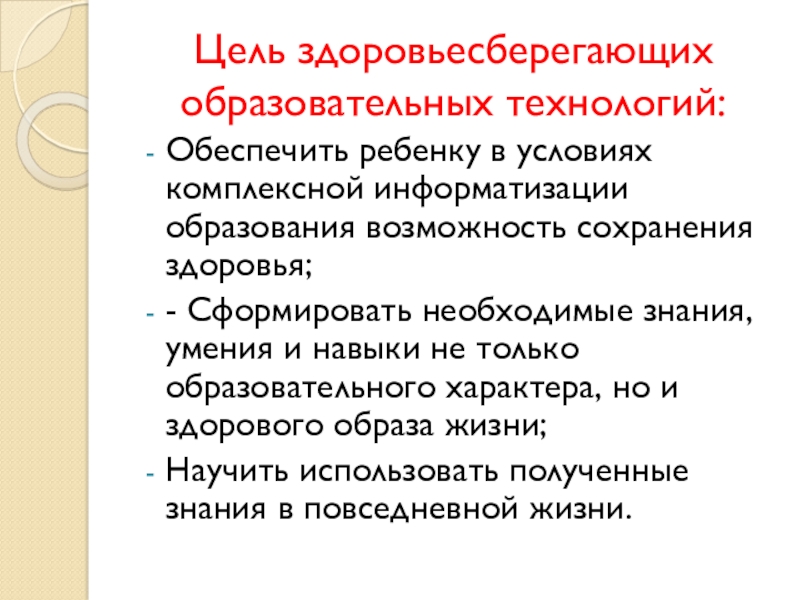 Слайд 3Цель здоровьесберегающих образовательных технологий: