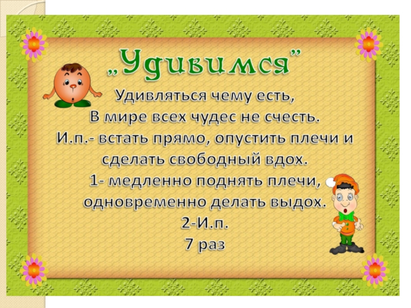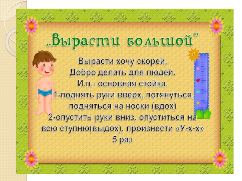 Слайд 25Упражнения для профилактики нарушения осанки у детей старшего дошкольного возраста