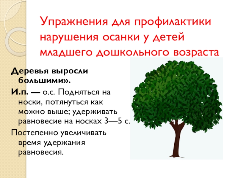 Слайд 20Упражнения для профилактики нарушения осанки у детей младшего дошкольного возраста