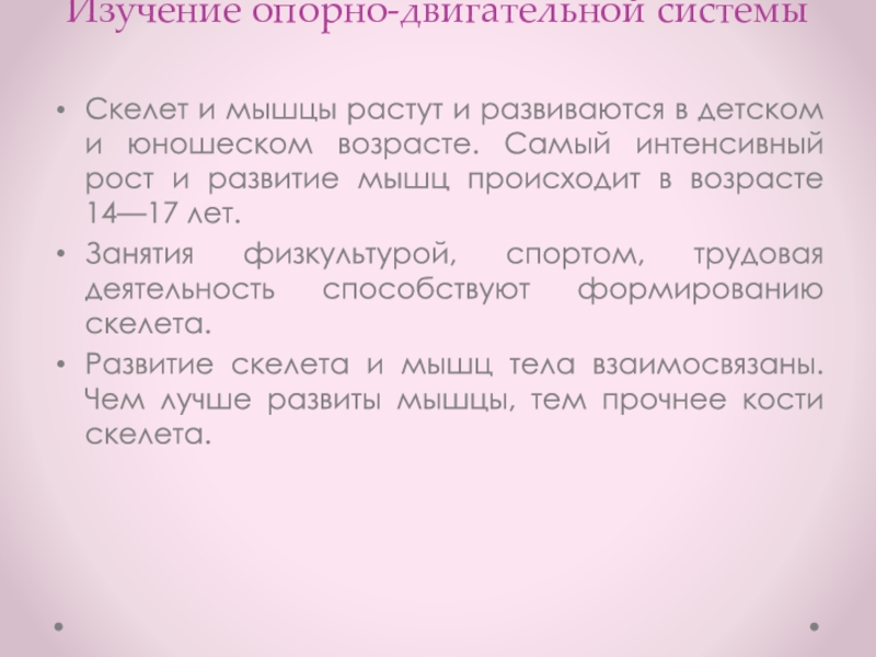 Изучение опорно-двигательной системыСкелет и мышцы растут и развиваются в детском и юношеском возрасте. Самый интенсивный рост и