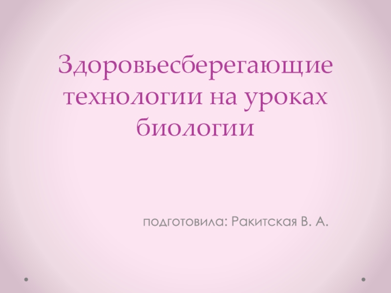 Здоровьесберегающие технологии на уроках биологии подготовила: Ракитская В. А.