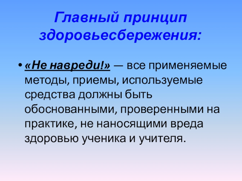 должны быть обоснованными, проверенными на практике, не наносящими вреда здоровью ученика и учителя.