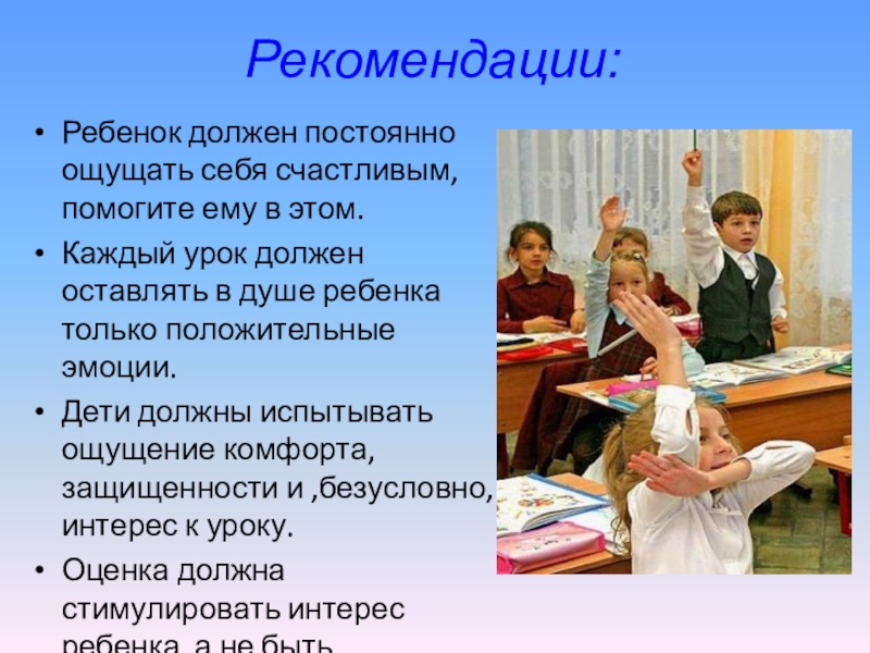 Оценка должна стимулировать интерес ребенка, а не быть наказанием.