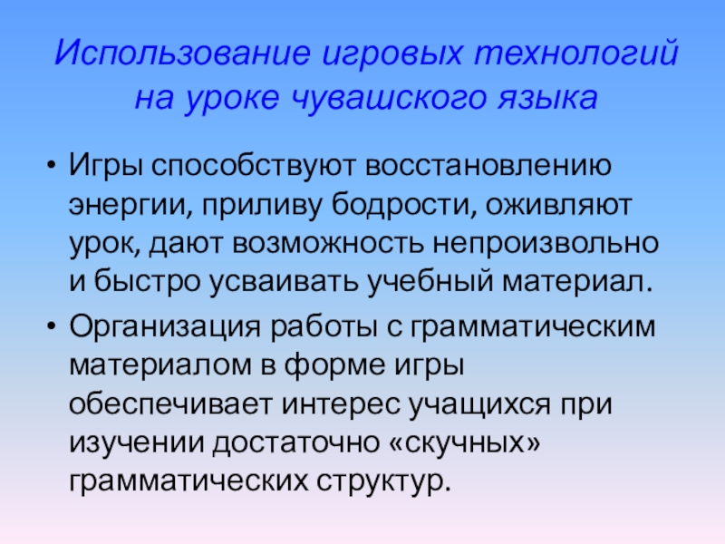 Слайд 8Использование игровых технологий на уроке чувашского языка