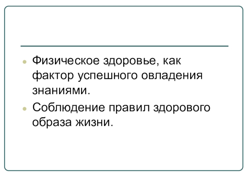 Физическое здоровье, как фактор успешного овладения знаниями.Соблюдение правил здорового образа жизни.